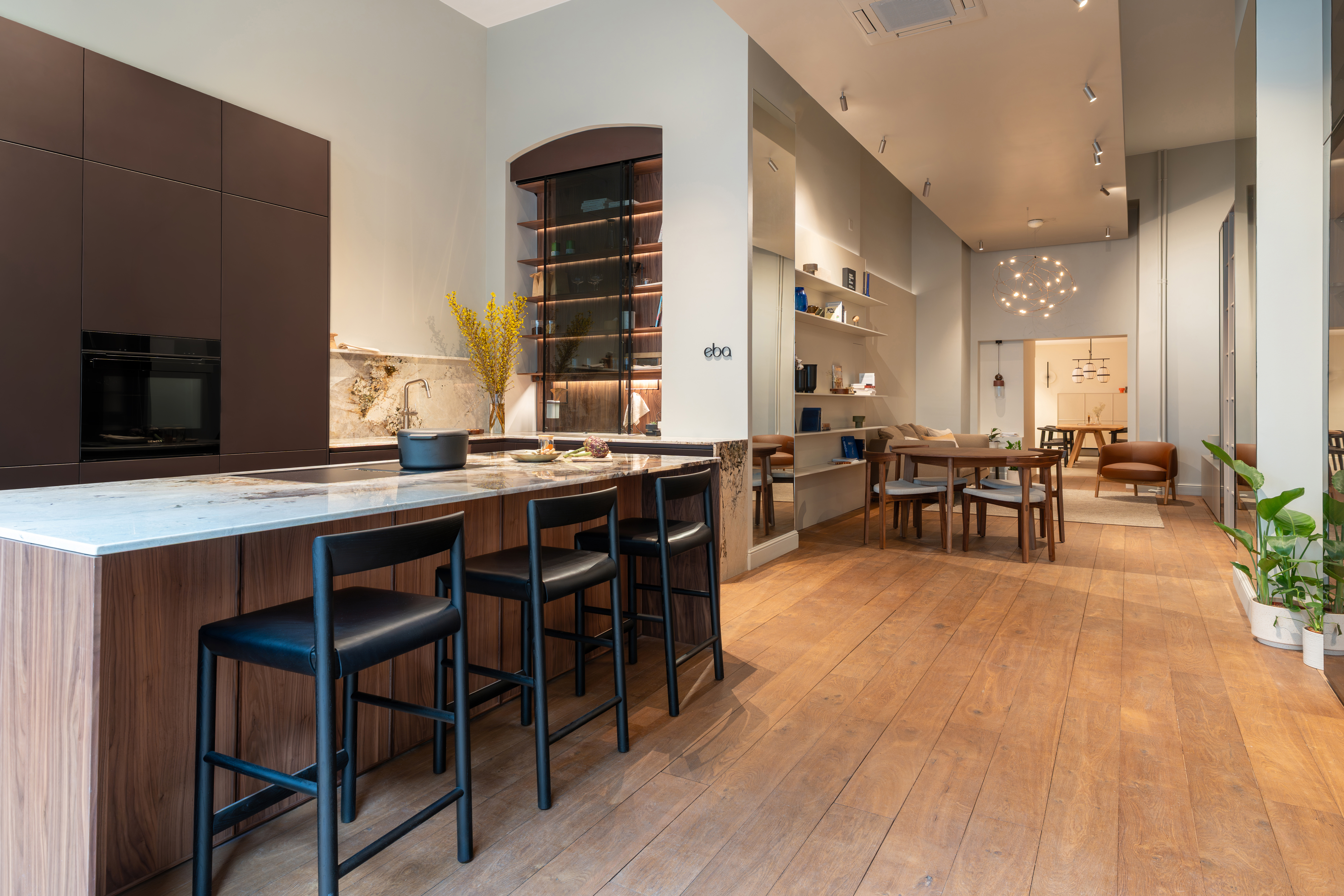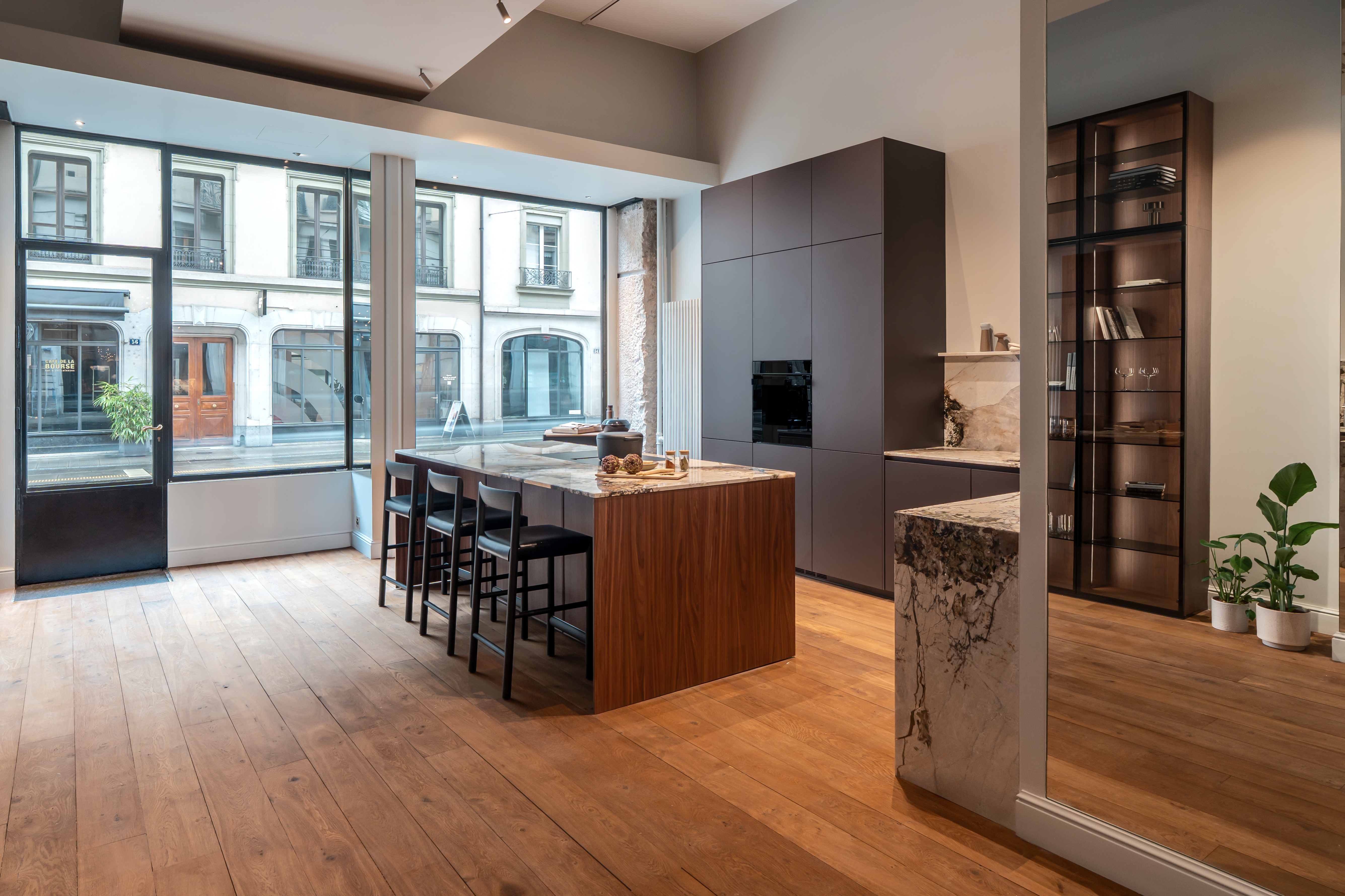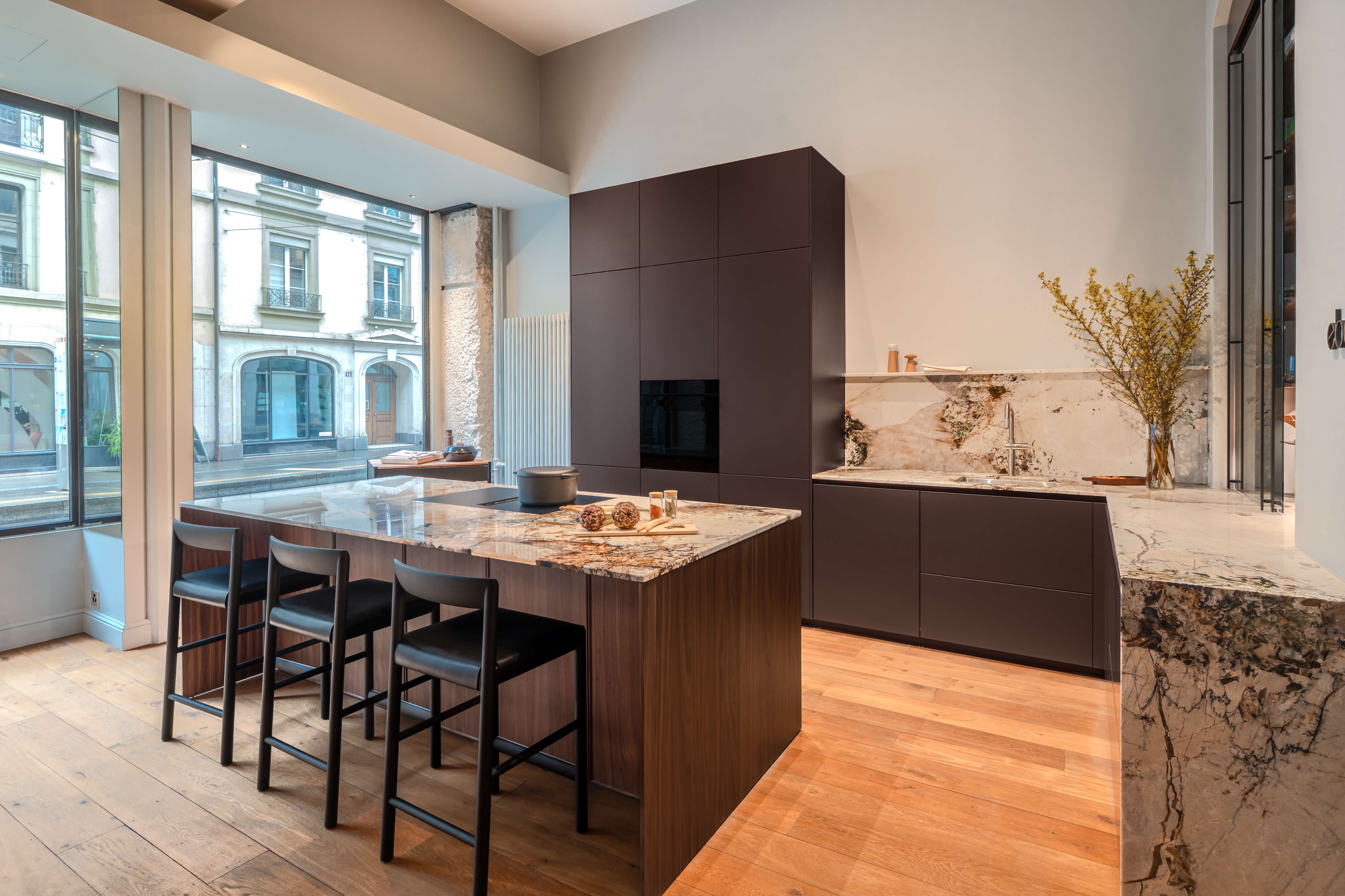 Dans ce showroom situé au centre de Genève, nous avons réalisé un aménagement complet incluant la pose de parquet, l’installation de cuisines, ainsi que la mise en place d’une bibliothèque murale, de penderies et d’un espace buanderie.