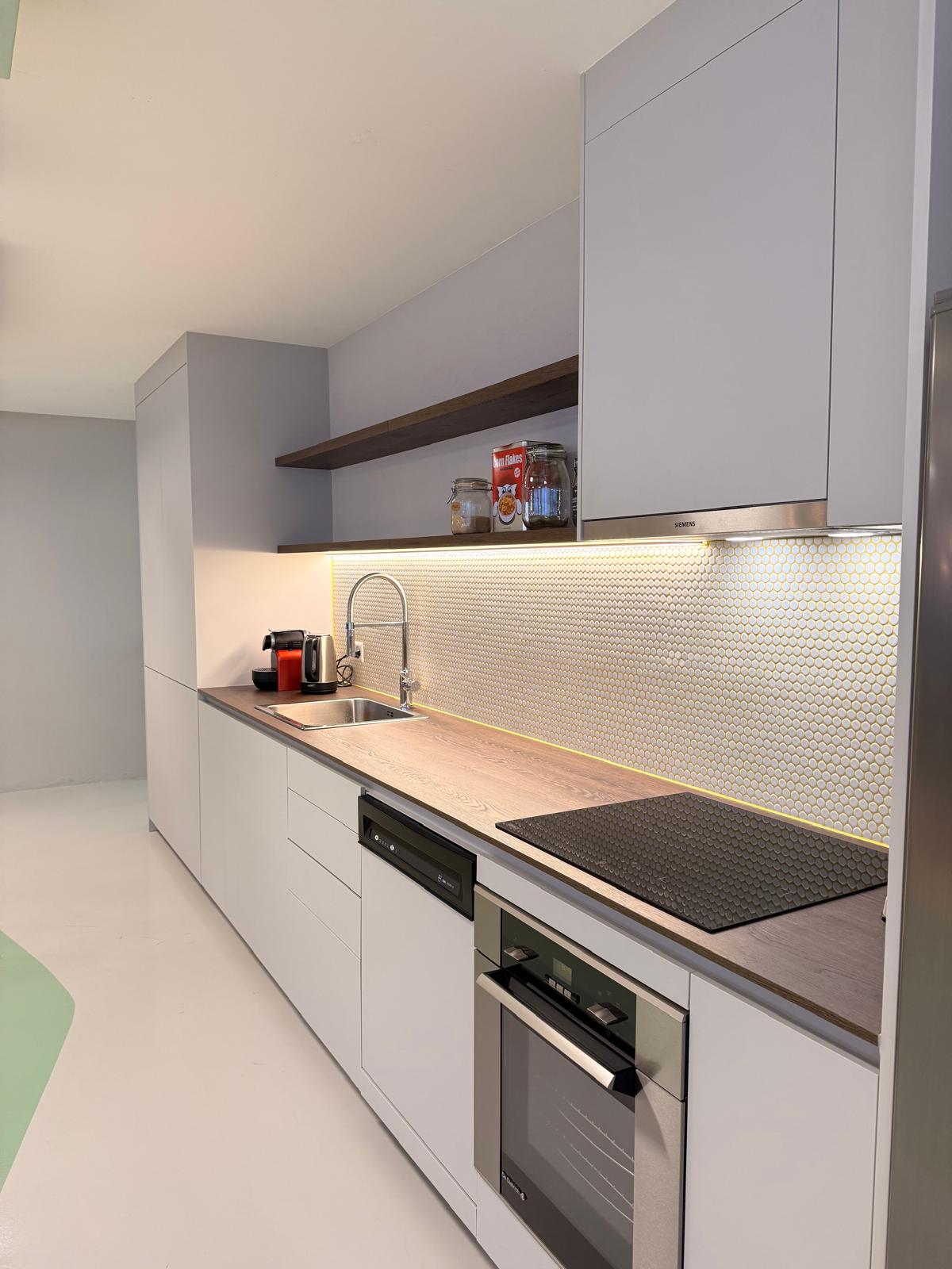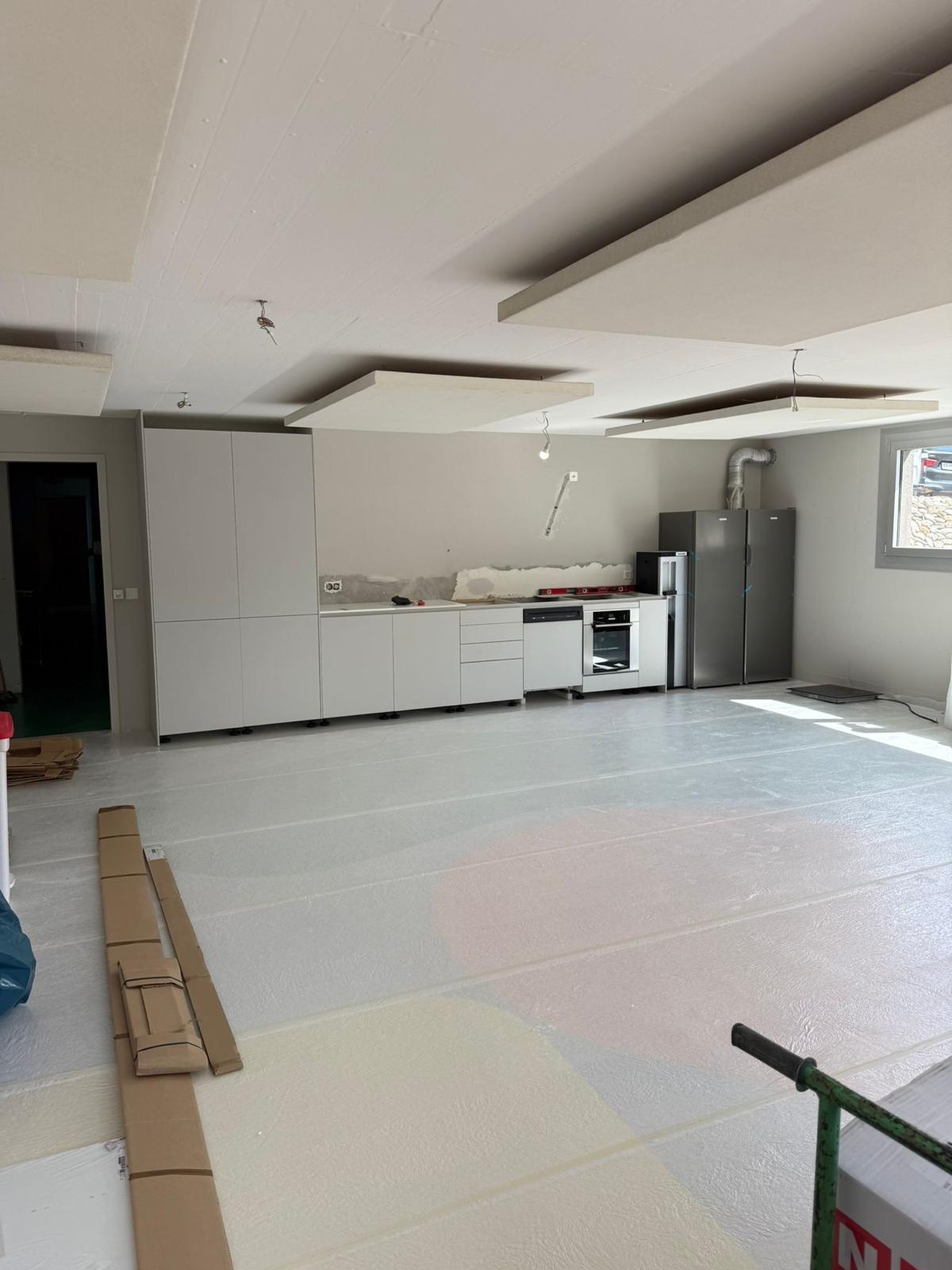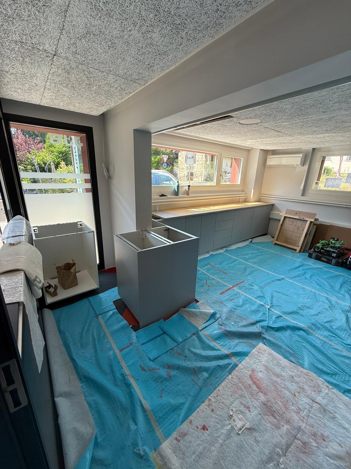 Notre intervention a inclus l'installation de mobilier sur mesure : rangements, plans de travail, et éléments menuisés pensés pour optimiser l'espace.