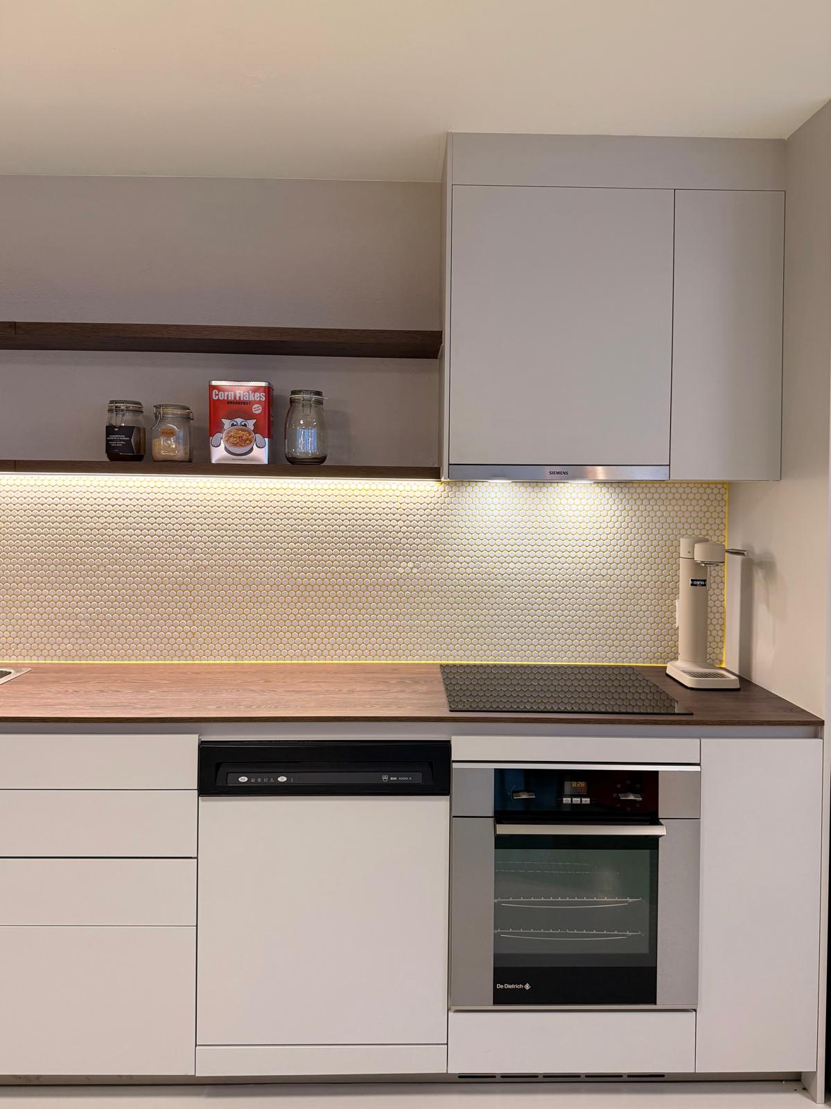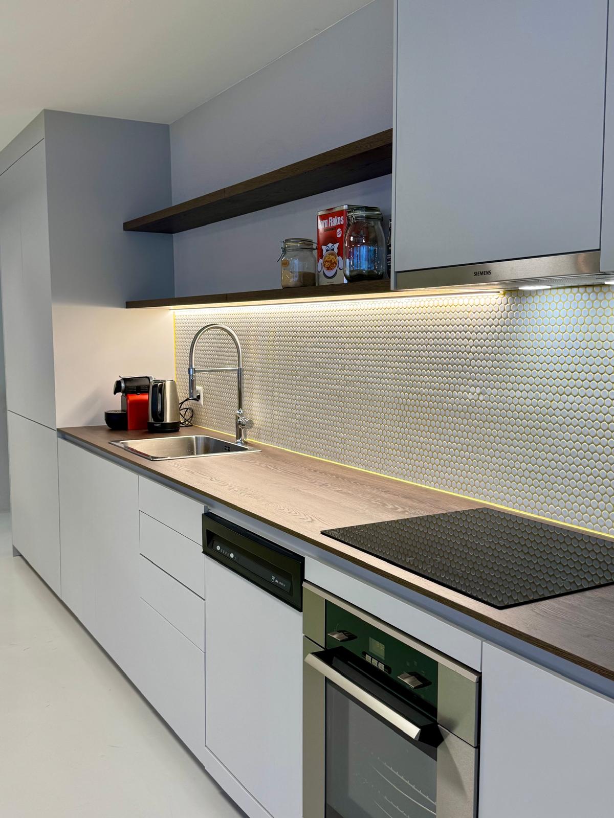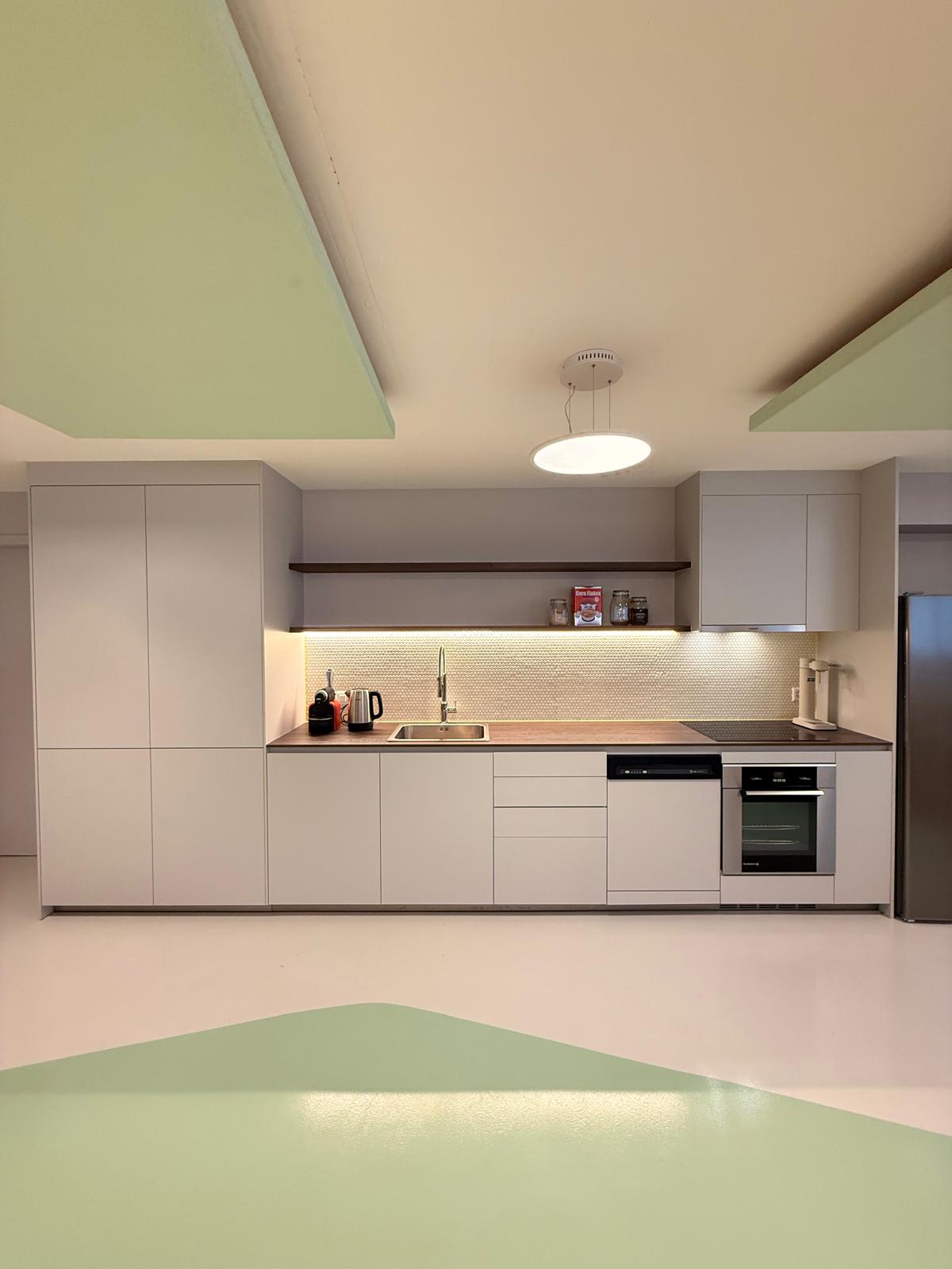 Notre intervention a inclus l'installation de mobilier sur mesure : rangements, plans de travail, et éléments menuisés pensés pour optimiser l'espace.