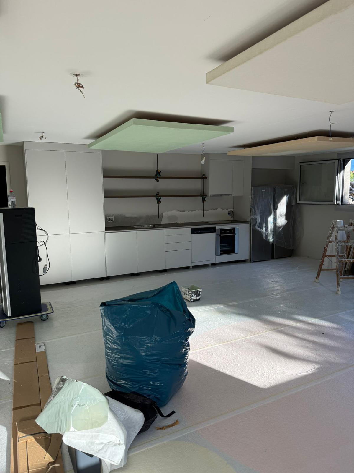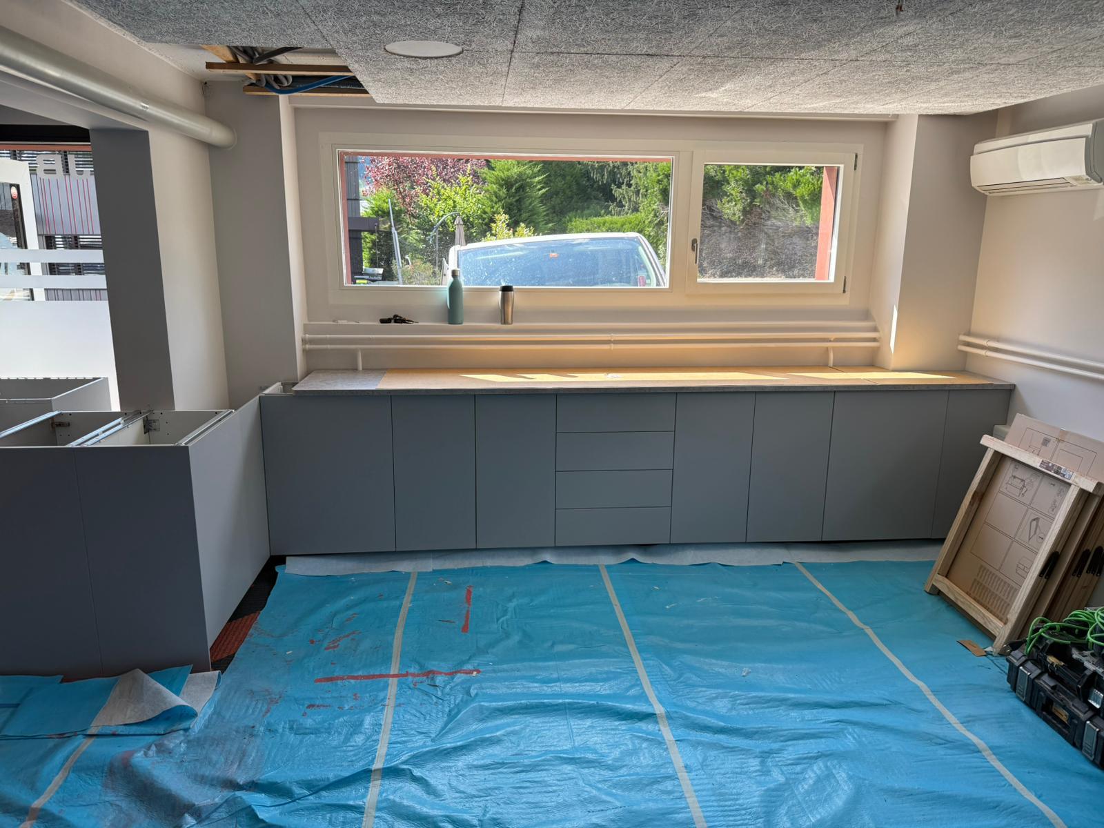 Notre intervention a inclus l'installation de mobilier sur mesure : rangements, plans de travail, et éléments menuisés pensés pour optimiser l'espace.